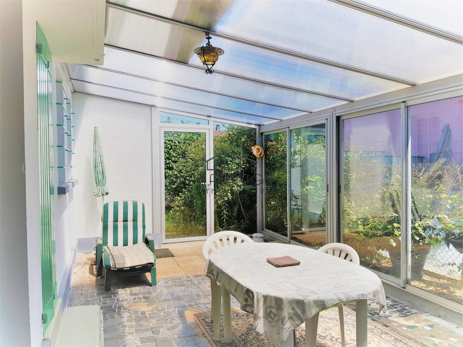 Edifiée sur 400 m2 de jardin clos, elle vous offrira : une entrée dans un séjour/salon, une cuisine éménagée et une arrière cuisine, 2 chambres, une salle d'eau, un wc indépendant, 19 m2 de verranda, de nombreux rangements et un garage.