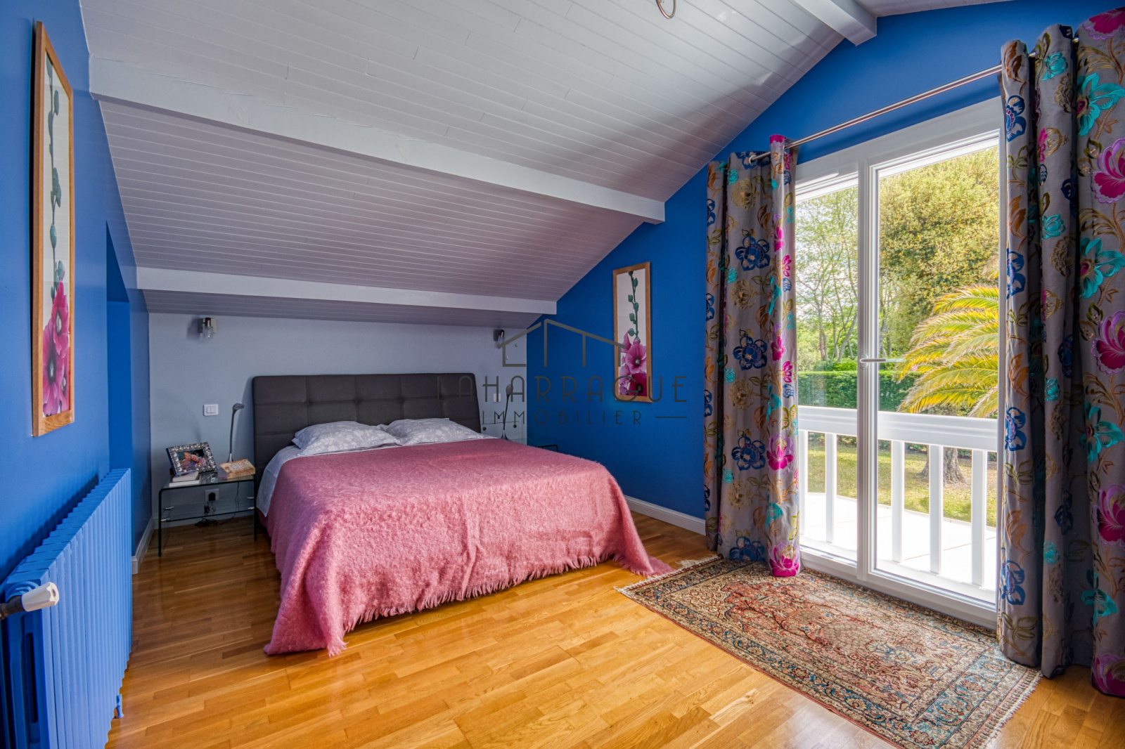 A l'étage : une mezzannine avec salle de télévision, une suite parentale avec salle de bain et wc, un bureau, un dressing, une chambre avec une salle de bain et un wc.