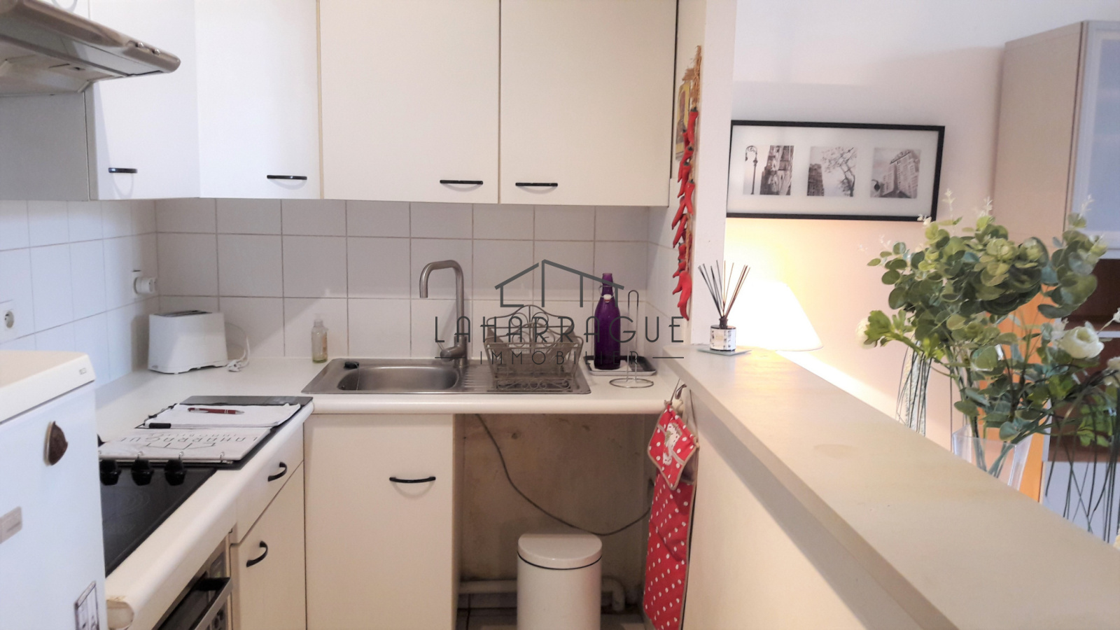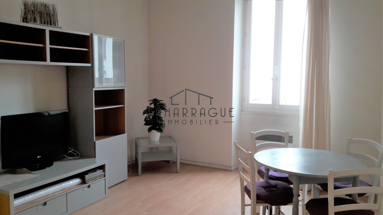 Dans une petite résidence classée, ce coquet T2 se compose ainsi : une entrée avec placard, une cuisine aménagée et équipée ouverte sur le séjour, une chambre et une salle de bains avec wc.