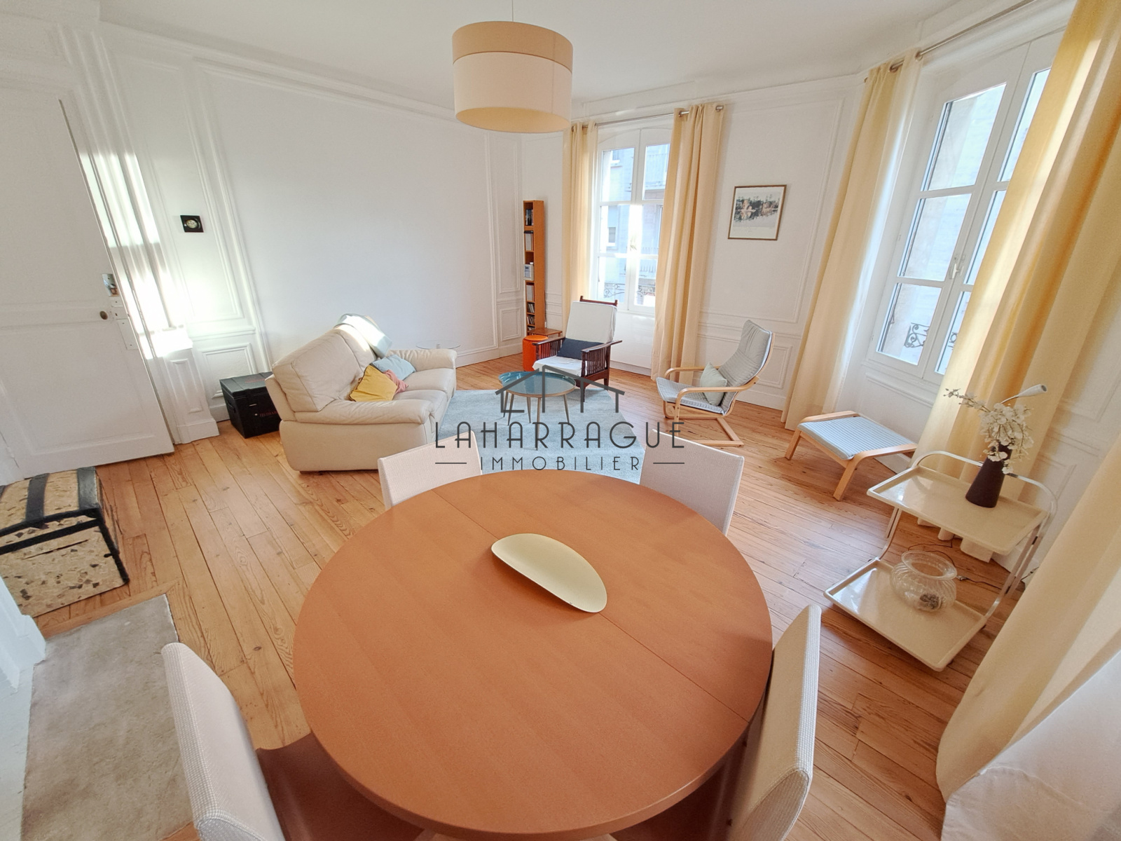 Vous serez séduit par le cachet de ce spacieux deux pièces situé à deux pas de la place de la mairie, dans un immeuble bayonnais plein de charme.