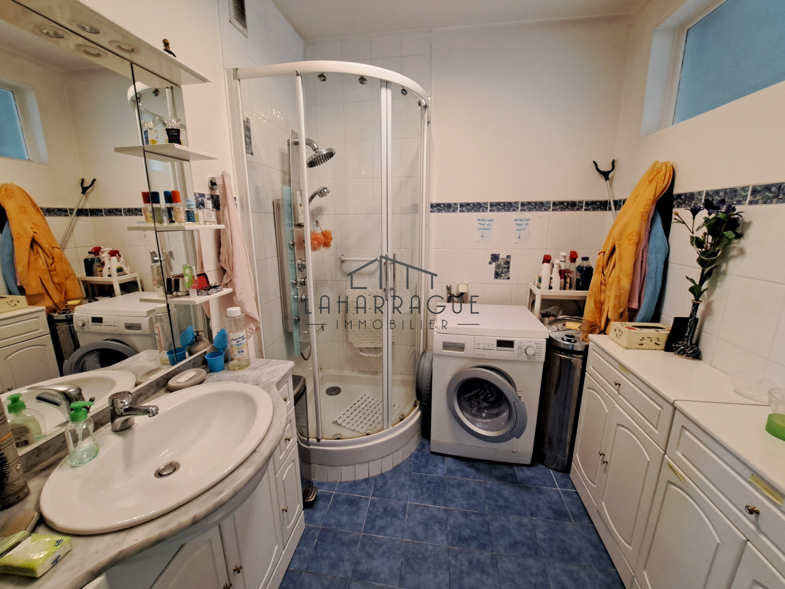 Il se présente ainsi : une entrée dans une lumineuse pièce à vivre donnant sur un balcon filant, une cuisine aménagée et équipée, un couloir, deux chambres avec balcon, une salle d'eau/buanderie et un wc avec lave-mains.