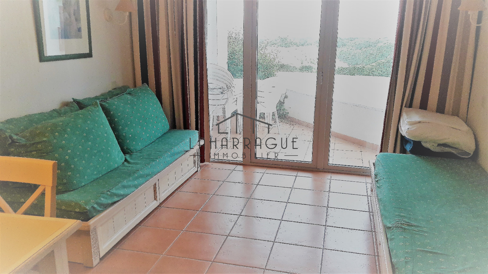 Vue imprenable sur le golf, les montagnes et en accès direct à la piscine, T1 entièrement équipée comprenant : une entrée avec coin chambre deux couchages simple, un séjour 2 couchages doubles avec cuisine aménagée et équipée donnant sur terrasse couverte, salle de bains avec wc, rangements et parking en sous sol. Tout à proximité : commerces, loisirs, tourisme...