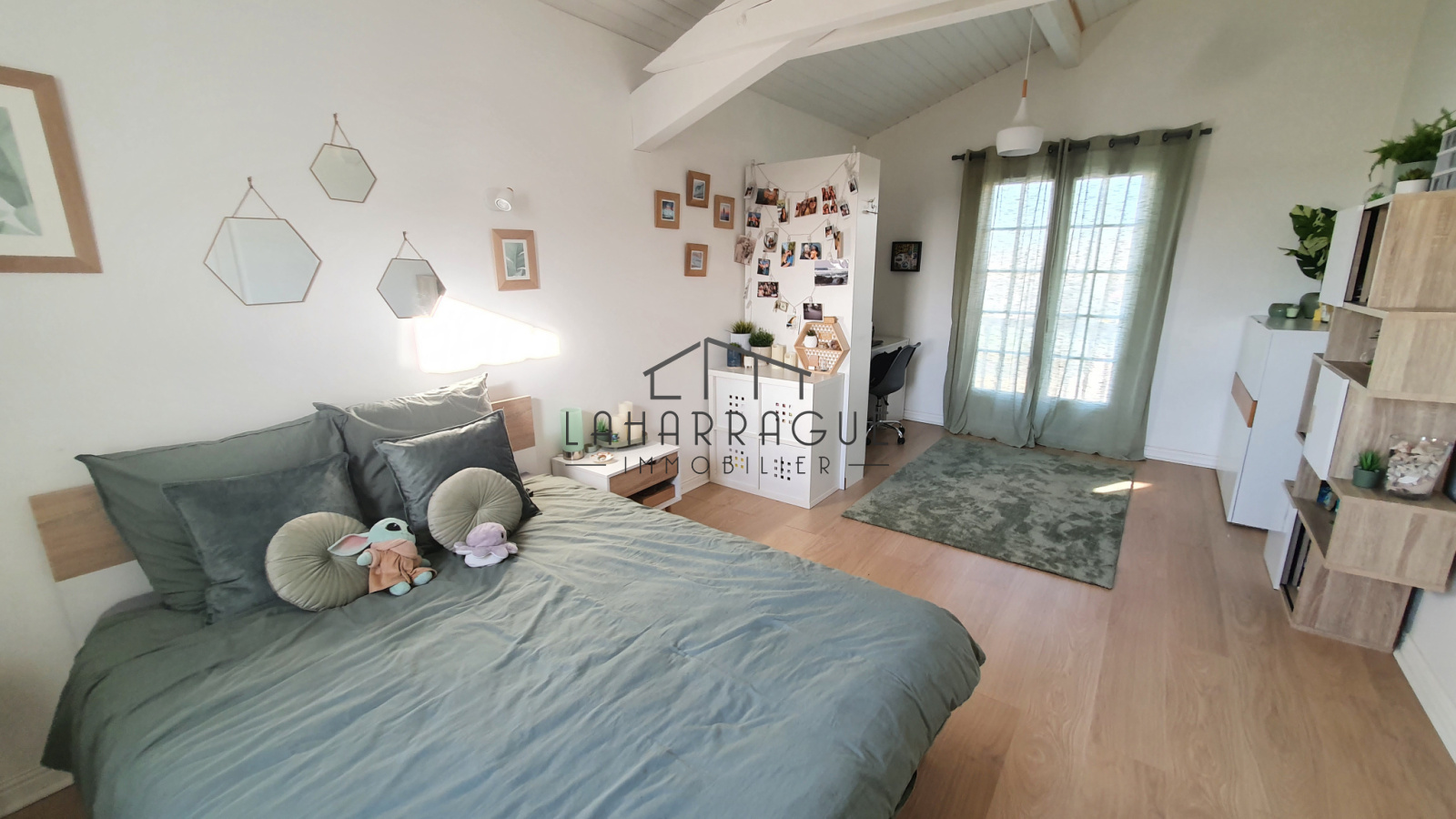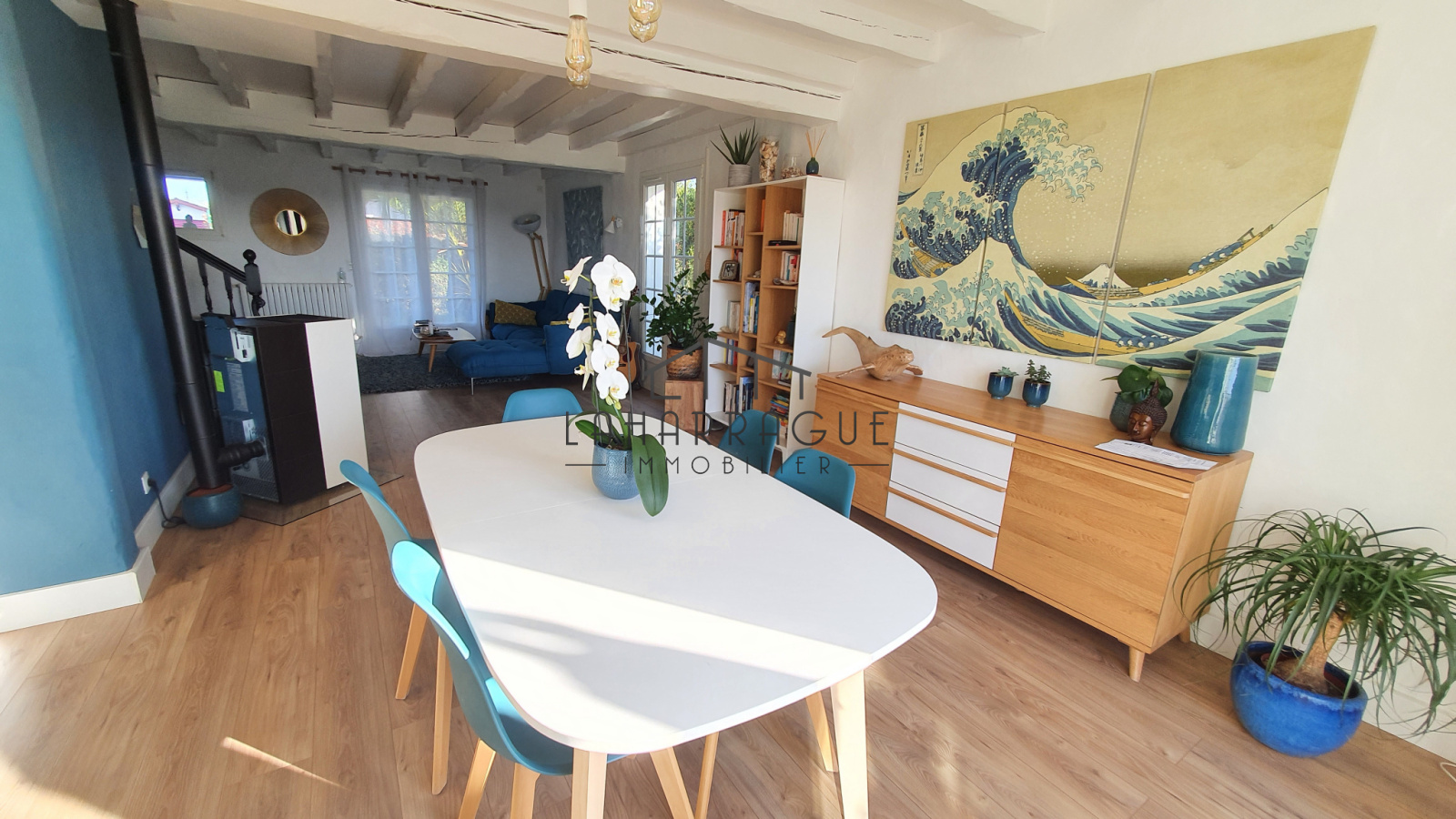 Elle vous propose en rez-de-chaussée : une confortable pièce à vivre avec son poêle donnant sur une vaste terrasse plein sud, une cuisine ouverte entièrement aménagée et équipée, une salle de jeux, un bureau, une suite parentale avec salle d'eau, un dressing et un wc.